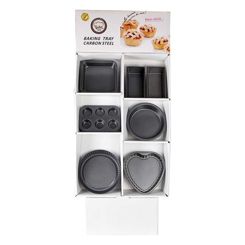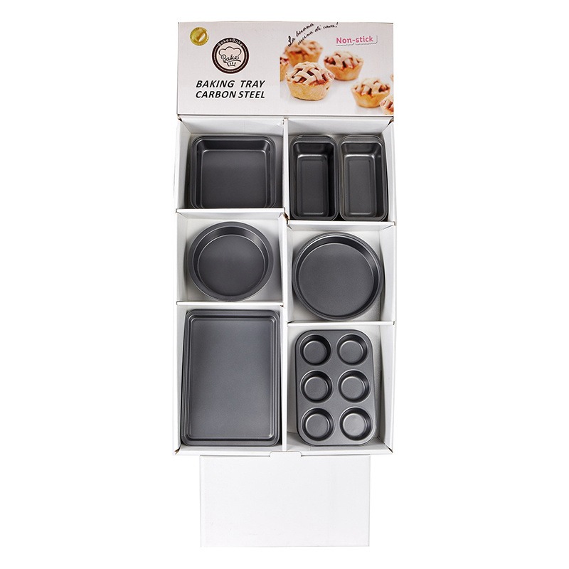 Unsere Backwerkzeuge PDQ -Sortiment bringen alle alltäglichen Backwerkzeuge in einem praktischen Paket zusammen. Jedes Set enthält eine Mischung aus beliebten Pfannen-wie Muffinschalen, Laibpfannen, Tortenformen und Keksblättern-, die in einer befristeten Schachtel gepackt sind. Es ist eine gute Wahl für Geschäfte, die ein einfaches Regal -Setup und für Kunden möchten, die die Grundlagen an einem Ort haben.